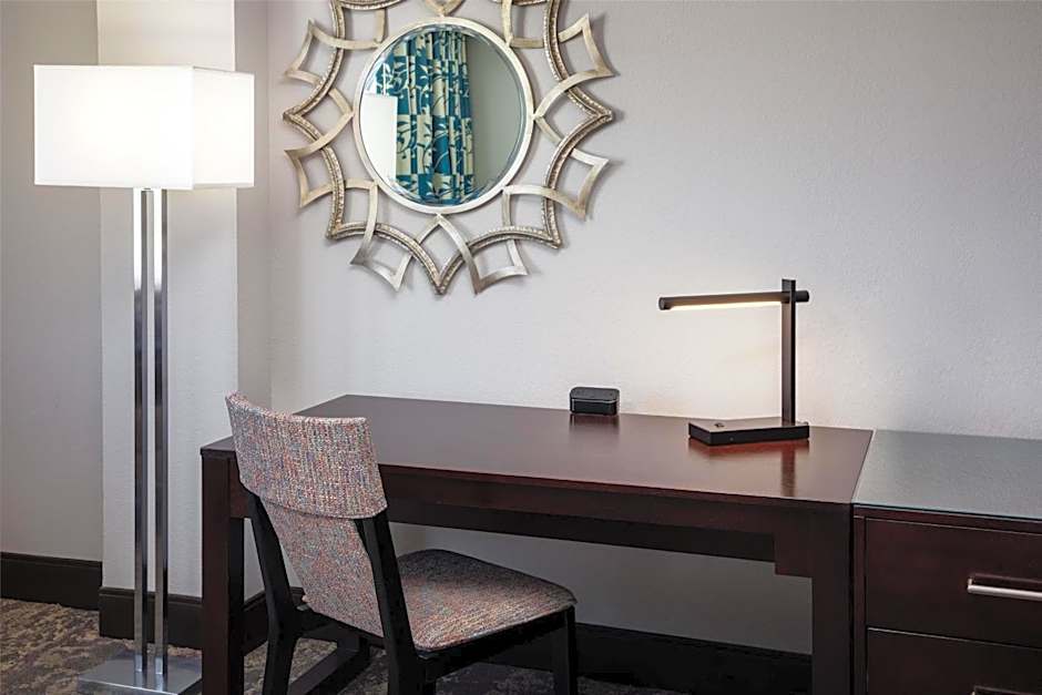 This mobility and hearing accessible standard room features one king-sized bed, and an accessible tub. The room also has a visual alarm, and notification devices for the doorbell or door knock and incoming telephone calls. Each guest room offers a 42-inch flat-screen HDTV with 60 HD channels and 45 HD music channels, mini-refrigerator, laptop safe, work desk, two-line phones with voicemail, coffeemaker, iron, ironing board, and hair dryer. Featuring luxurious bath amenities. Any corresponding photo may not reflect the specific accessible room type or room feature.